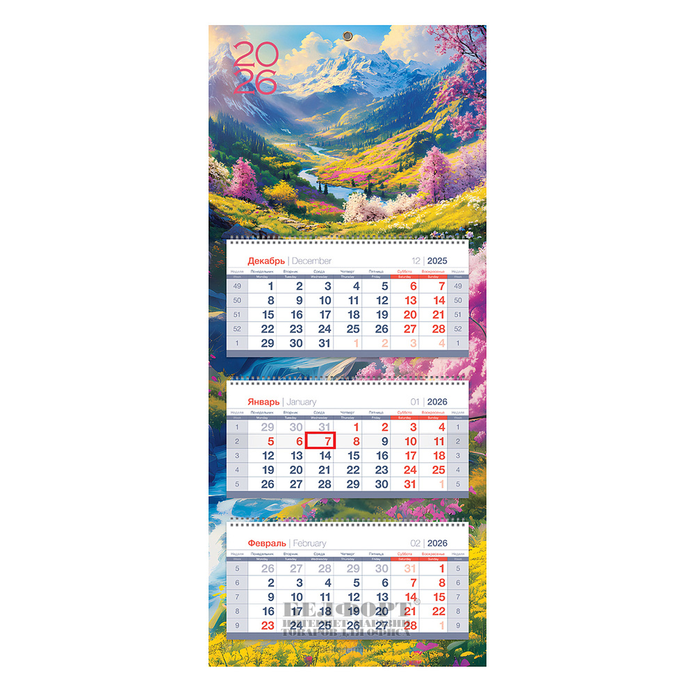 Добавить к сравнению259122Есть в наличии 15 шт.Календарь квартальный 2026г. 3-х блочный на 3гребнях, 697мм*305мм, Полином, "Эконом. Каменистый ручей", с бегунком