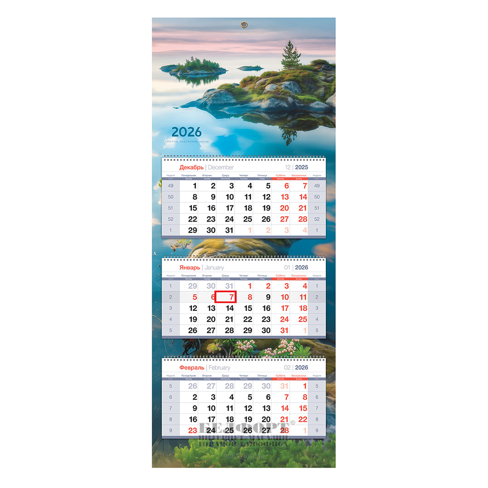 Календарь квартальный 2026г. 3-х блочный на 3гребнях, 810мм*330мм, BG, "Premium "Корельские острова", с бегунком