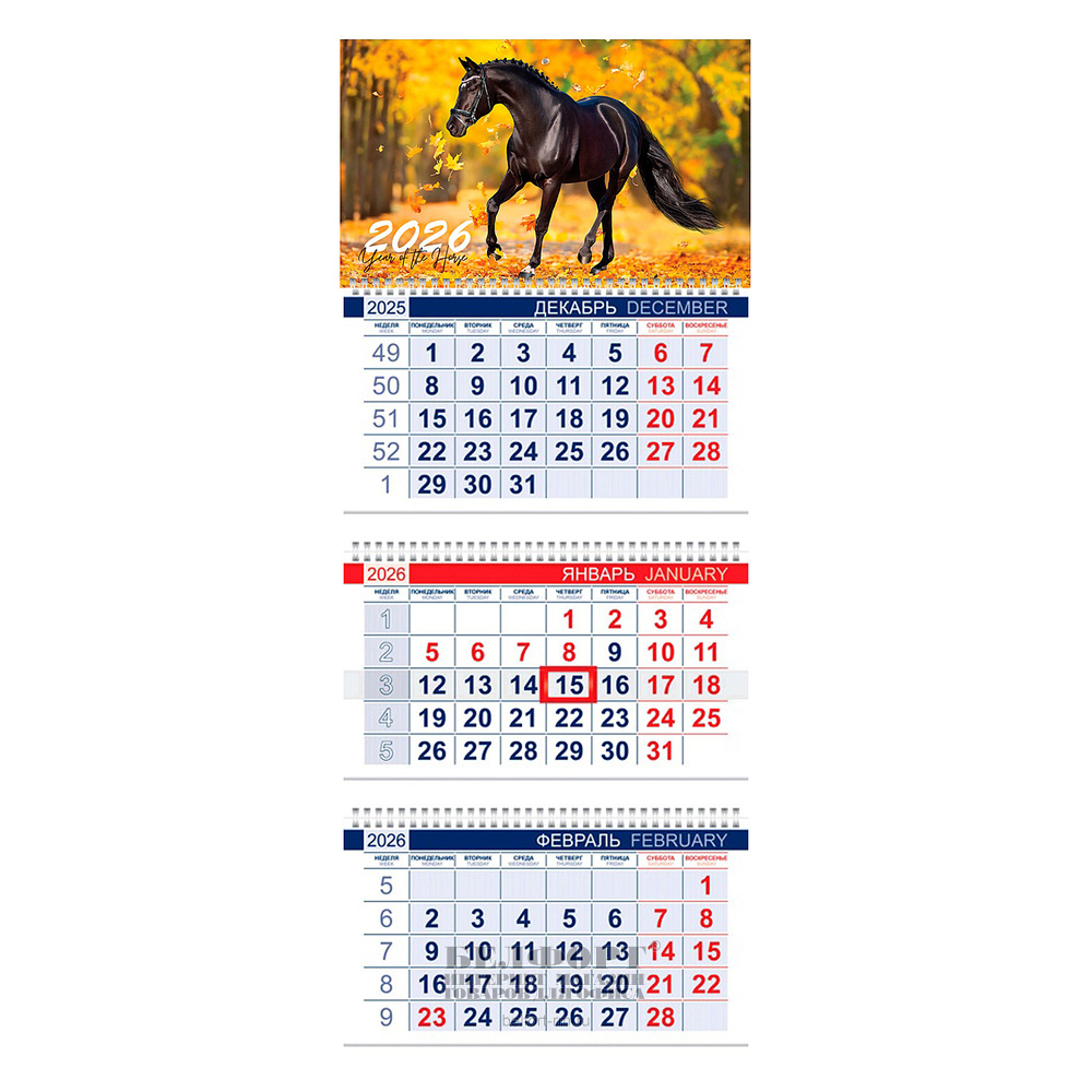 Календарь квартальный 2026г. 3-х блочный на 3гребнях, 750мм*297мм, Hatber, "Офис.Россия", с бегунком