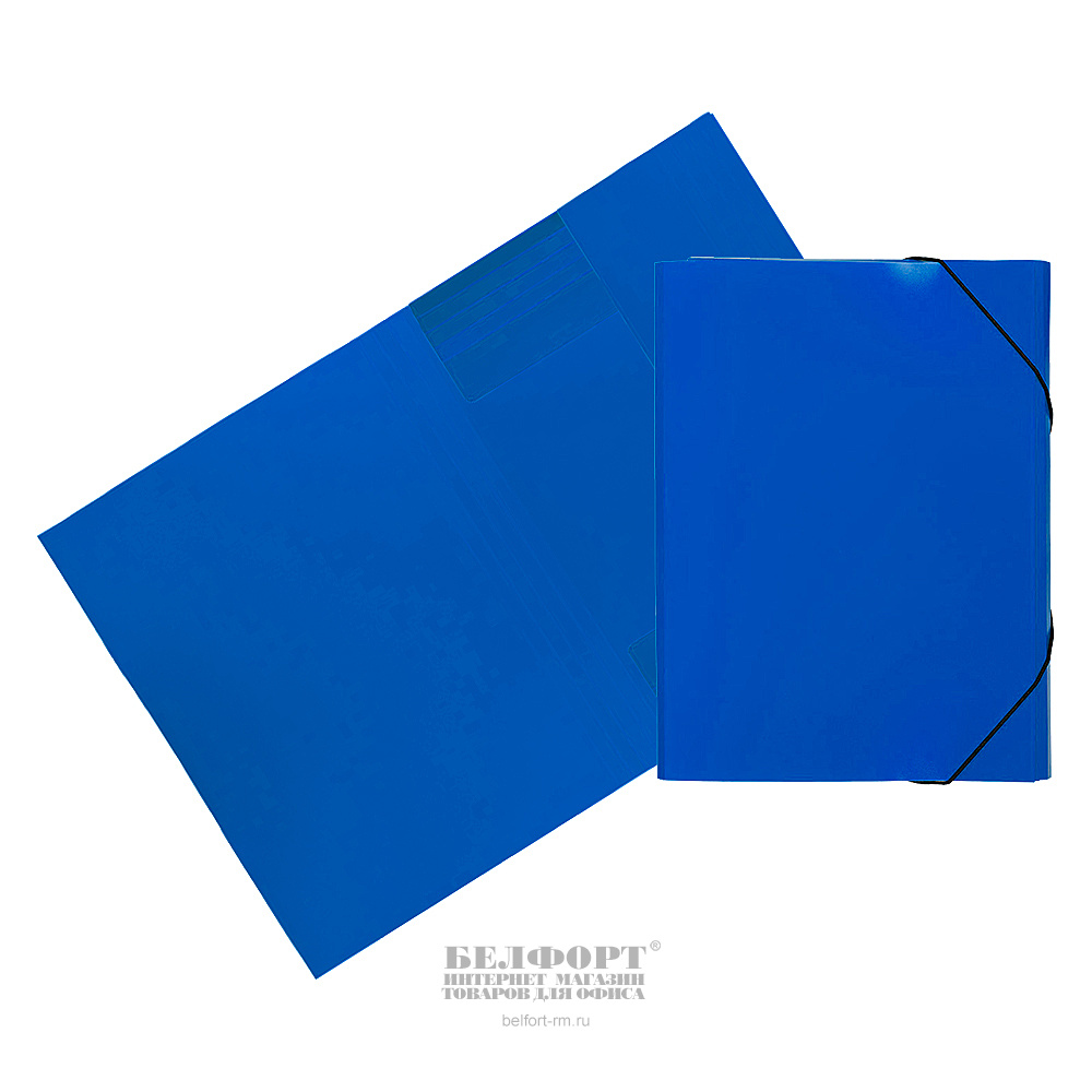 Папка А4, на резинках, 0,7мм, Бюрократ, ширина корешка 40мм, пластик, синяя
