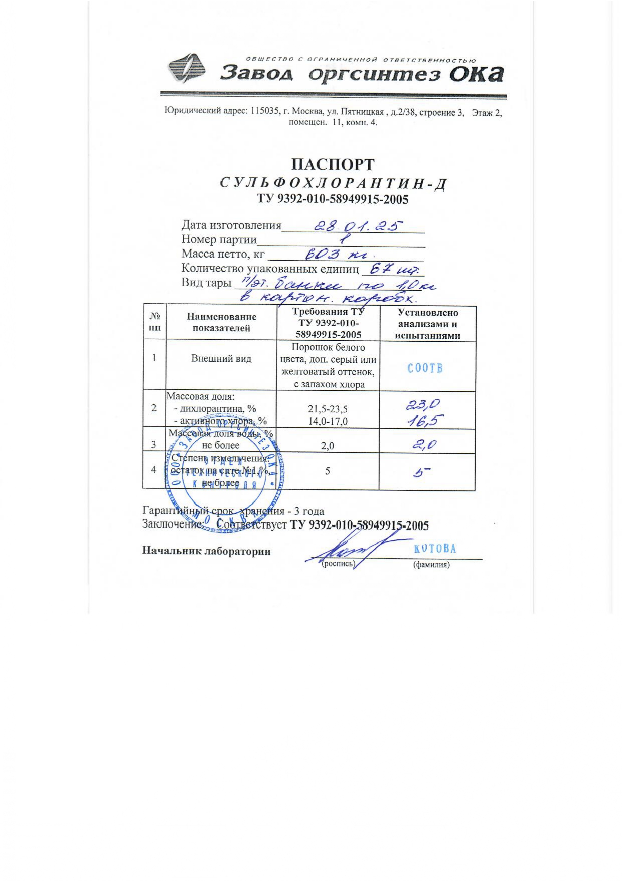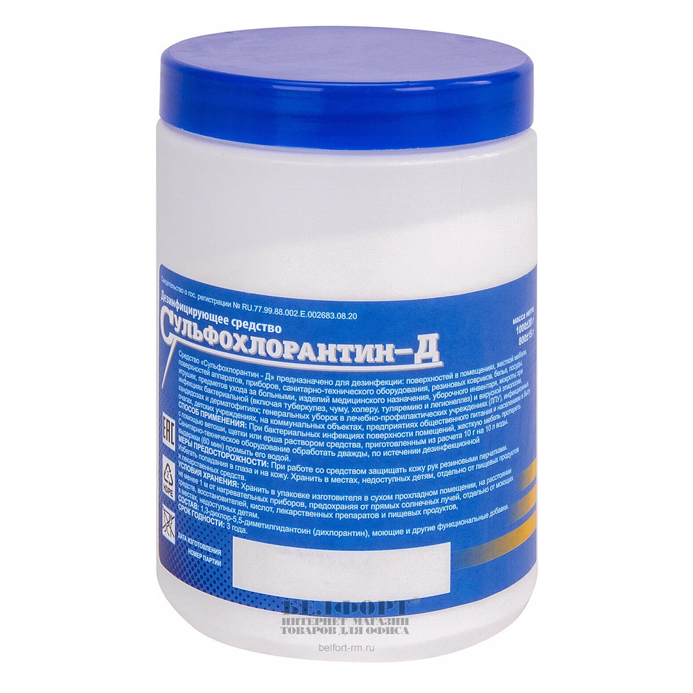 Средство дезинфицирующее Сульфохлорантин-Д Завод Оргсинтез Ока, 1кг, пластик. банка, порошок