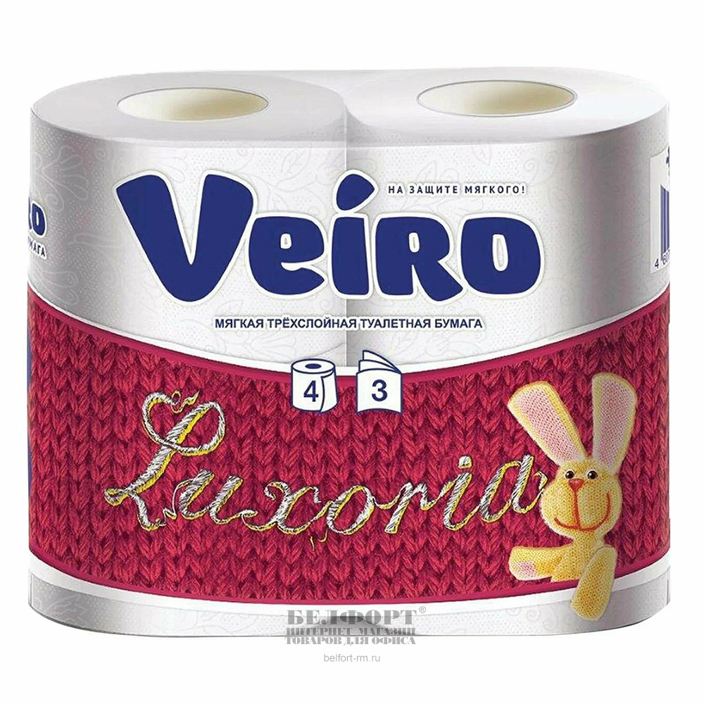 Добавить к сравнению258470Есть в наличии 10 уп.Бумага туалетная 4-слойн., Veiro, "Elite", белая, 15м, 4шт, с втулкой, с тиснением, перфорация есть