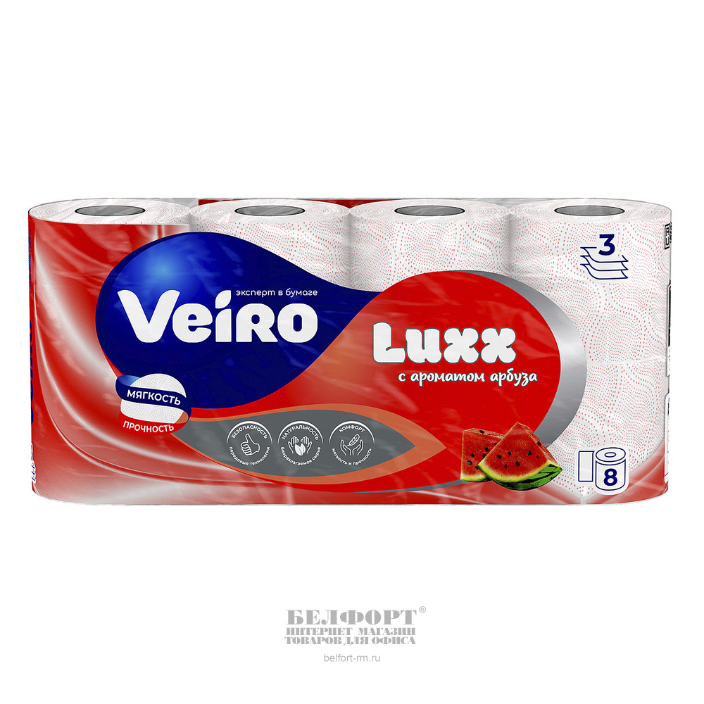 Бумага туалетная 3-слойн., Veiro, "Luxx", "Арбуз", белая, 16,5м, 12шт, с втулкой, с тиснением, перфорация есть