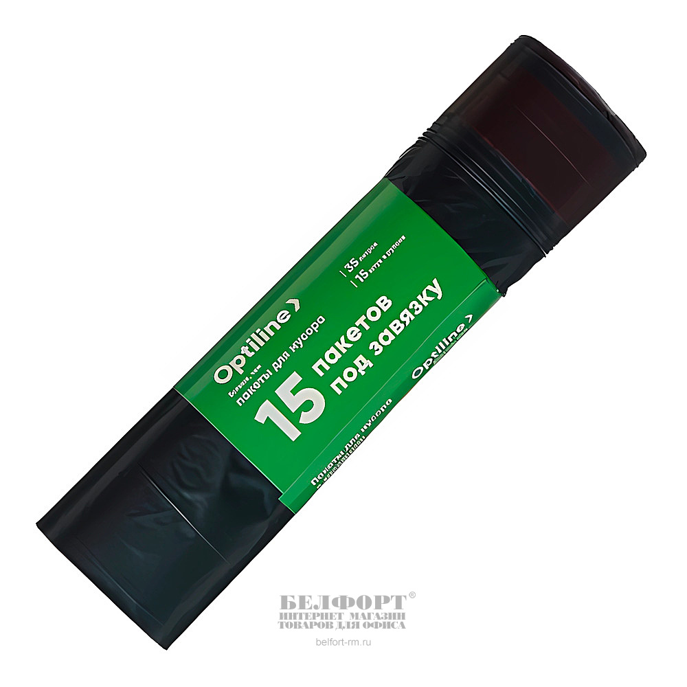 Мешки для мусора 35л, 57см*54см, OptiLine, ПВД, 20мкм, черные, 15шт, рул, с завязками