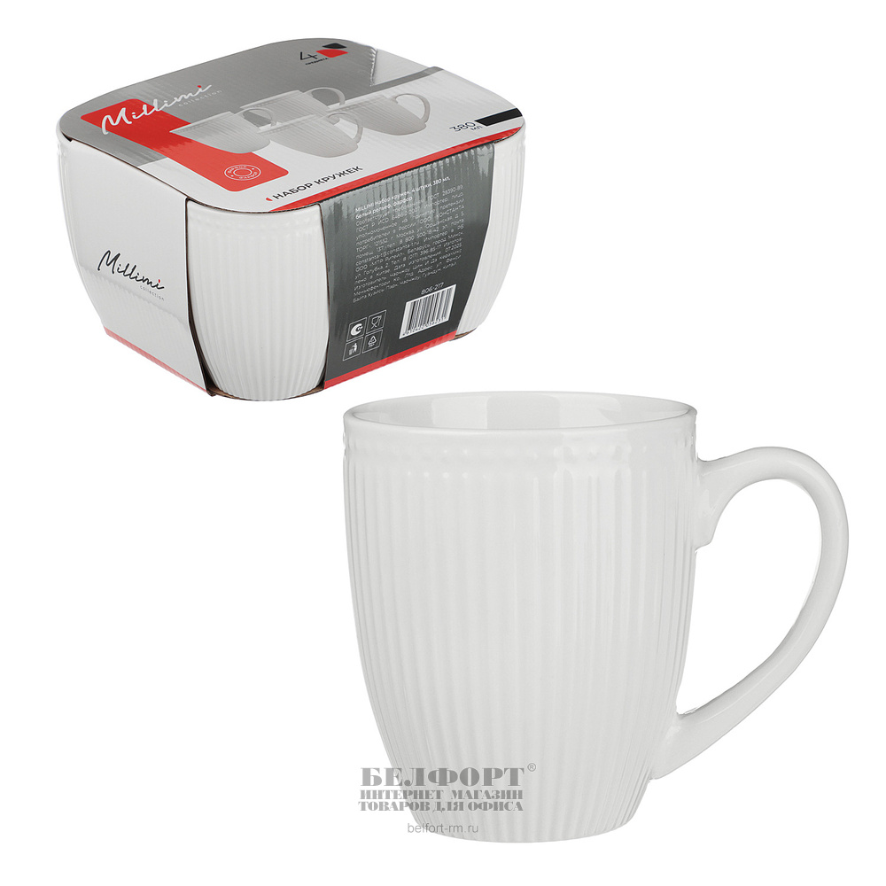 Набор чайный 4шт, 380мл, фарфор, Millimi, рифленый, белый