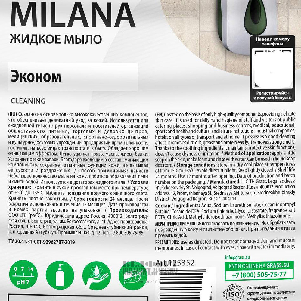 Добавить к сравнению175316Есть в наличии 30 шт.Жидкое крем-мыло 1л, Grass, "Milana", "Жемчужное", дозатор