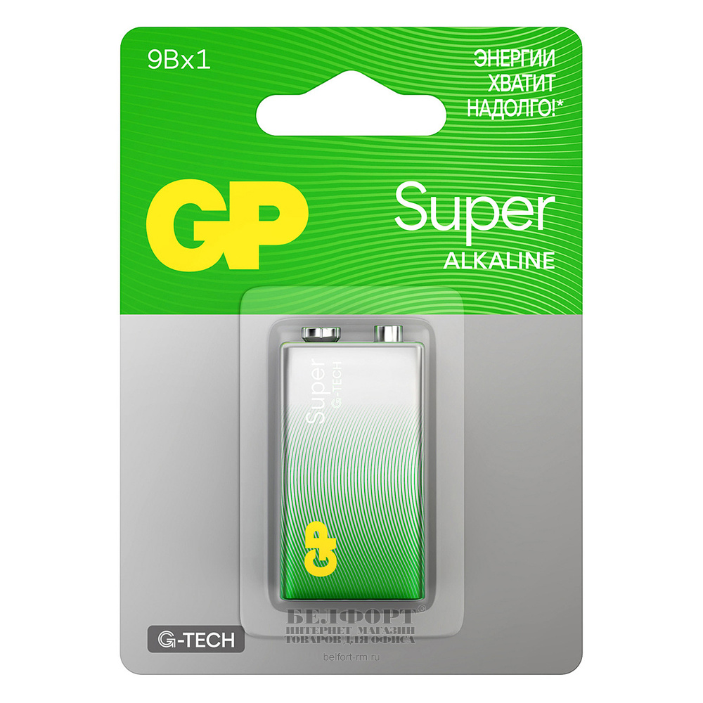 Батарея Крона (6LR61, 6F22, 1604), GP, Super G-Tech, 9V, алкалиновая