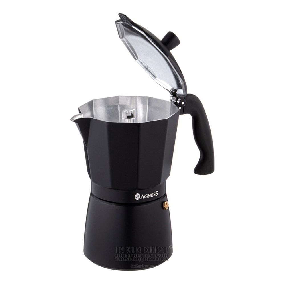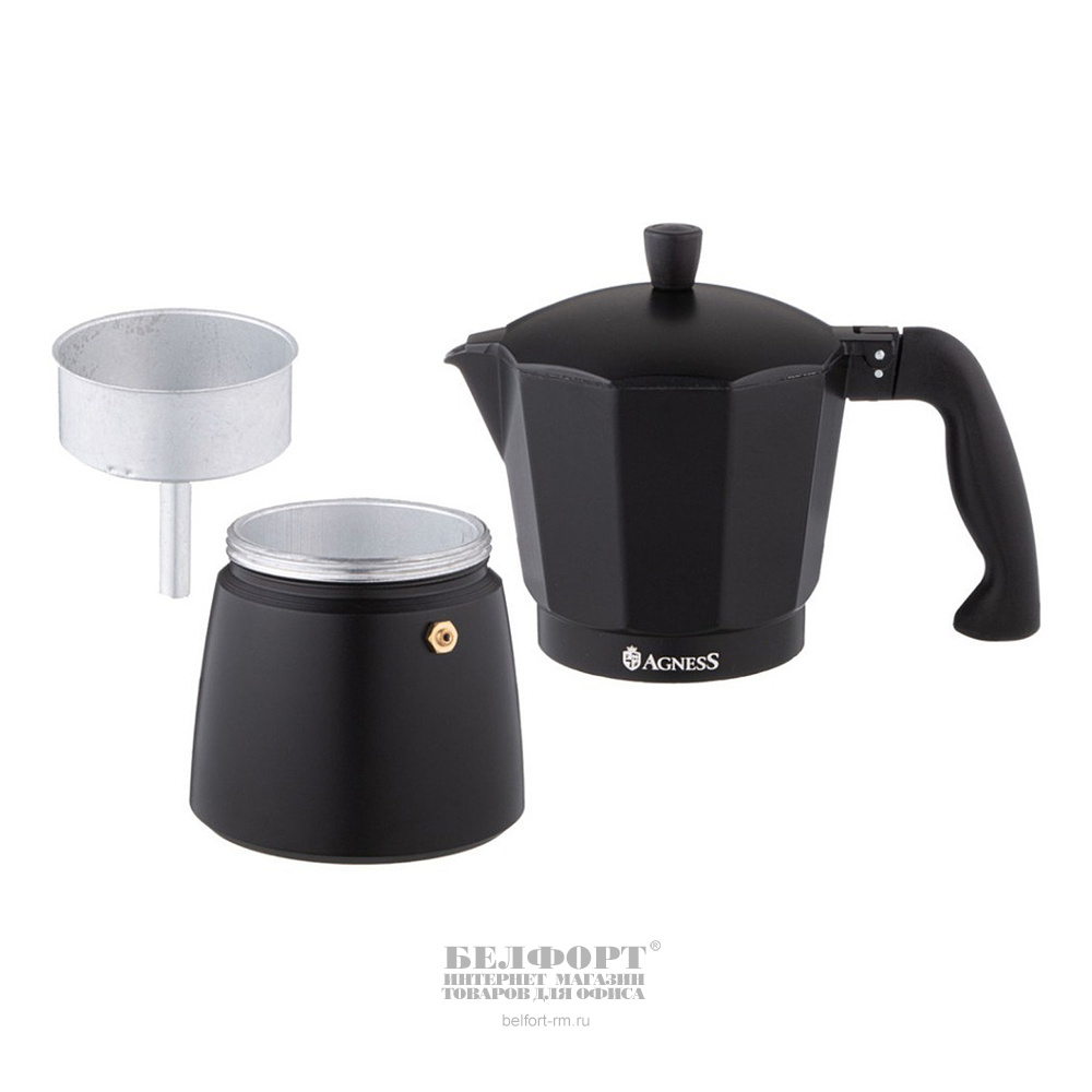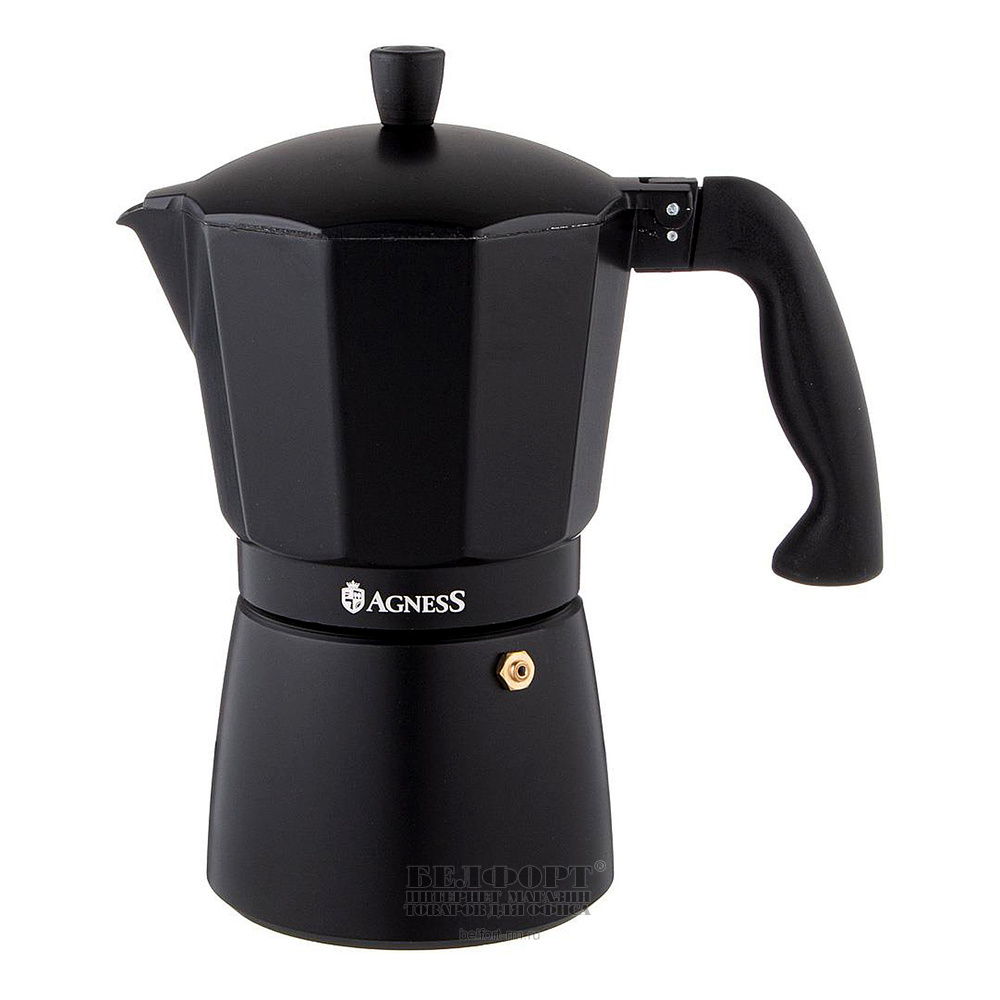 Кофеварка гейзерная Agness, Bonjour, 450мл, черная