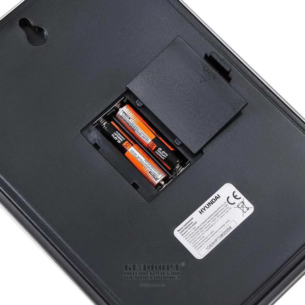 Весы кухонные Hyundai, HYS-KG221, стекло, макс. вес 5кг, батарейки в комплекте Фотографии на сайте могут иметь незначительные расхождения с фактическим внешним видом и комплектностью поставляемого товара