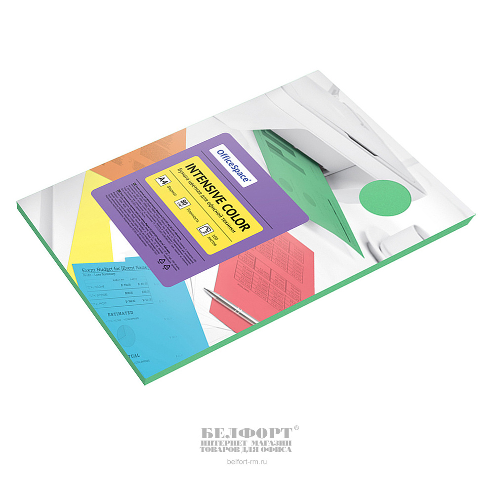 Бумага OfficeSpace, "Intensive Color", А4, 80г⁄м², 100л, зеленая, intensive (интенсивный)