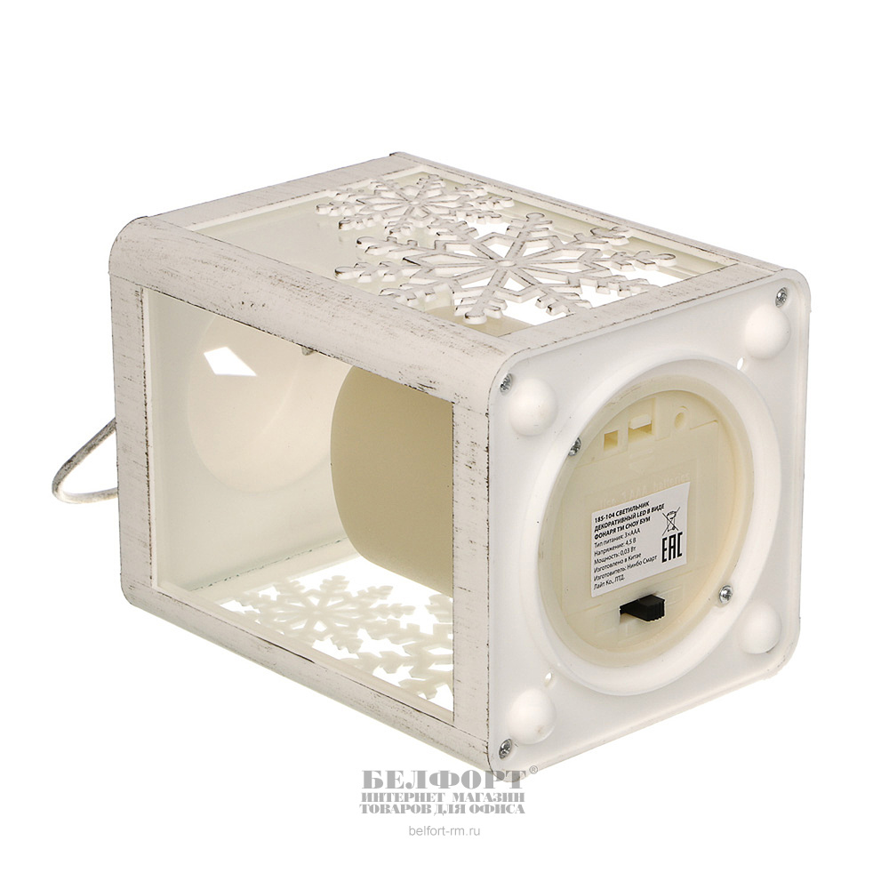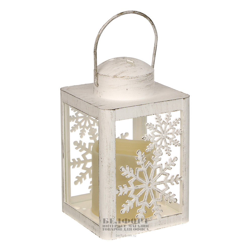 Светильник декоративный 10см*10см*17см, белый, фигурный, Сноу Бум, "Фонарик", для помещений, полипропилен, с LED свечой, один режим, батарейки в комплекте