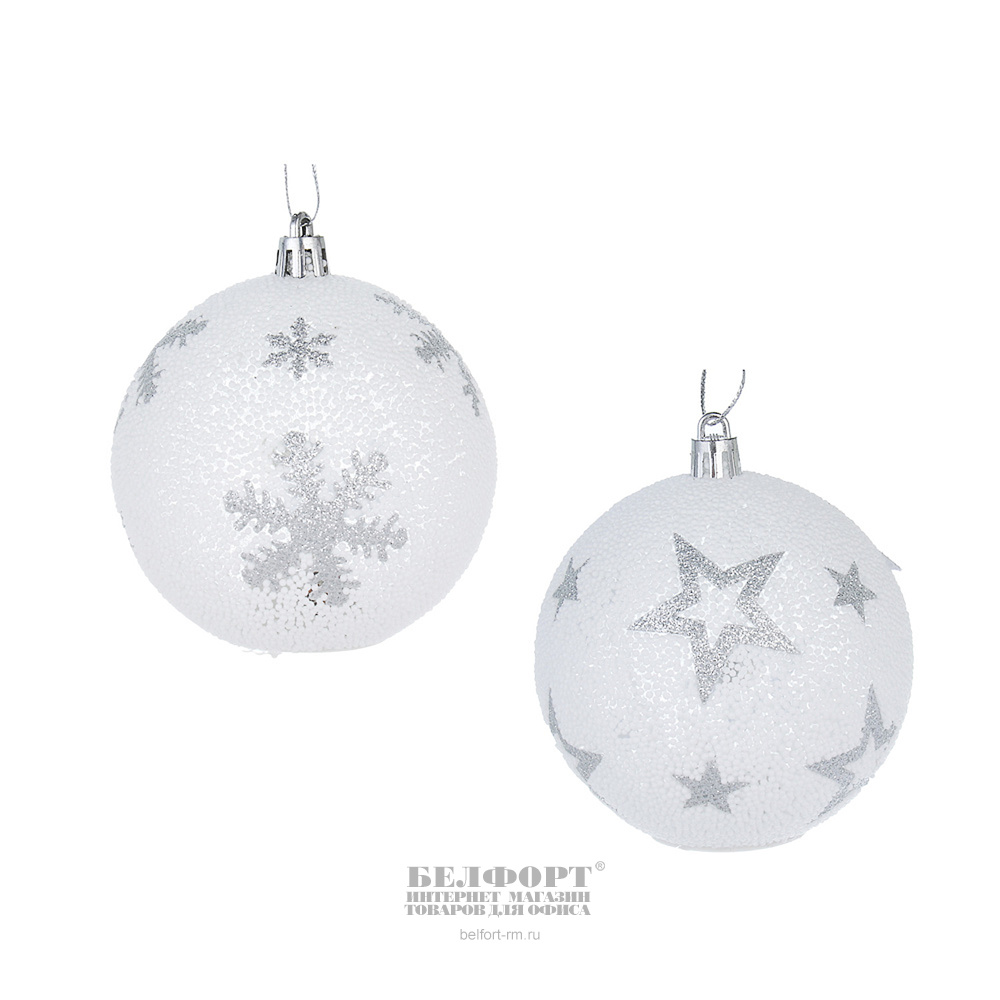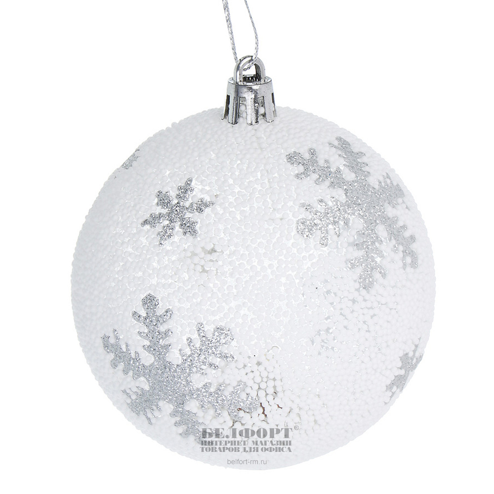 Подвеска LED 8 см, Сноу Бум, "Шар. Снежинка на белом", пластик, шар, 3*LR44