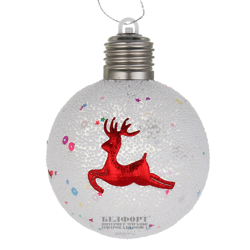 Подвеска LED 8 см, Сноу Бум, "Шар", ассорти, пластик, шар, 3*LR44