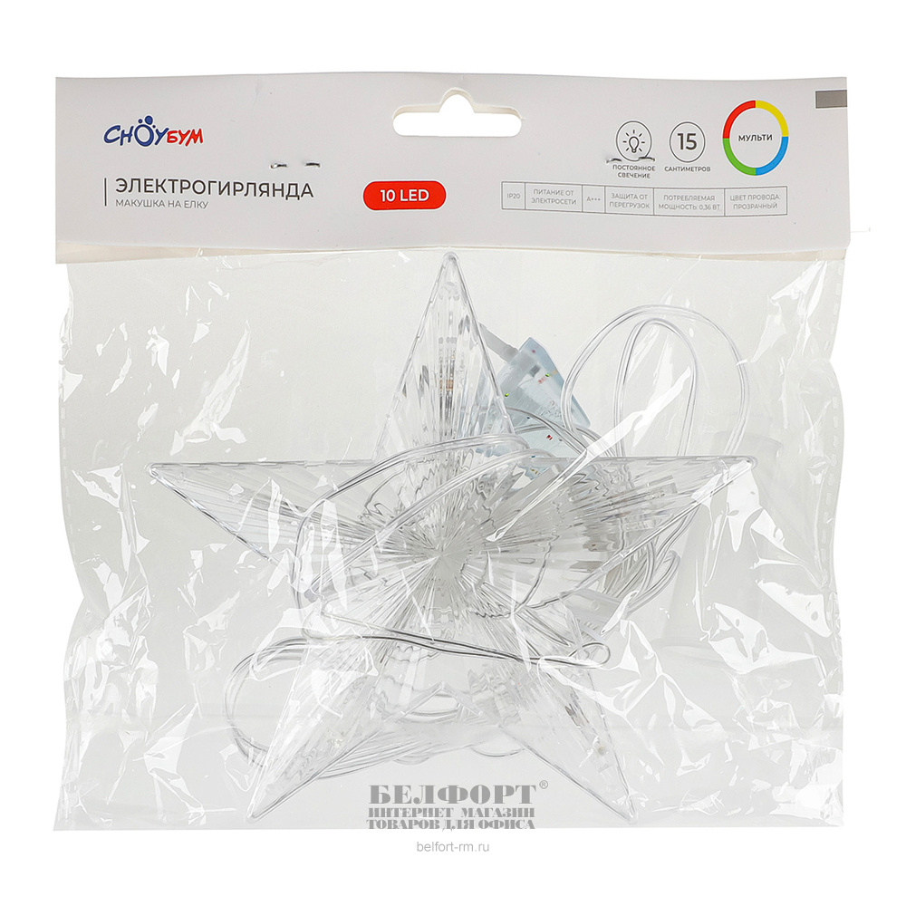 Верхушка на елку 15см, 10шт.лампочек, мульти, фигурная, Сноу Бум, для помещений, ПВХ, пост. свечение