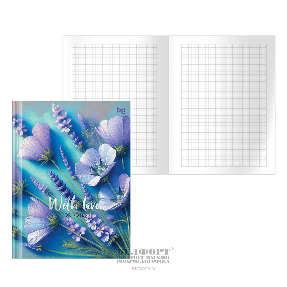 Бизнес-блокнот А6, 80л, BG, "Flowers with love", картон ламинированный, клетка, в твердом переплете, цветной, матовая ламинация, тиснение фольгой
