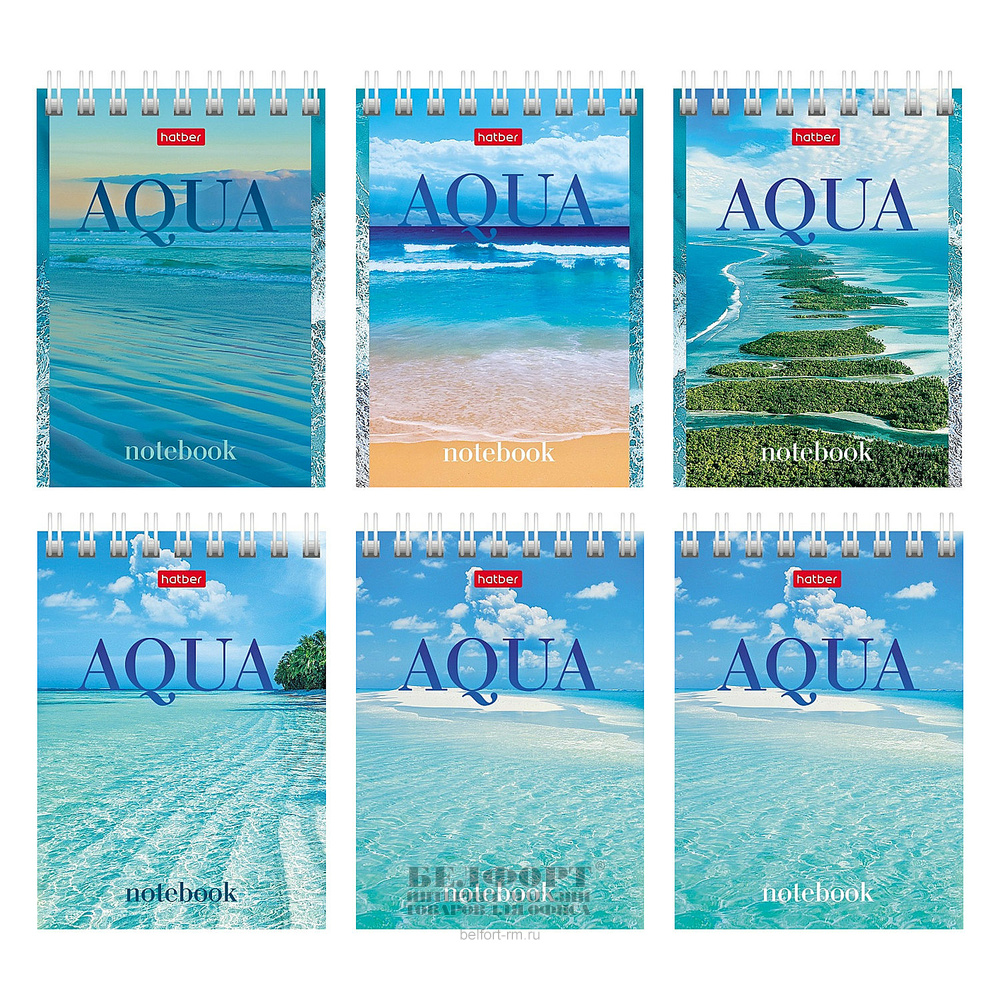 Блокнот А7, 60л, Hatber, "AQUA", картон мелованный, клетка, на спирали(гребне), ассорти
