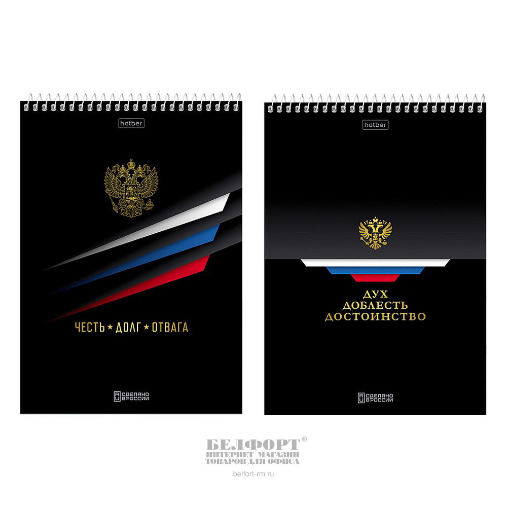 Блокнот А5, 60л, Hatber, "Россия", картон мелованный, клетка, на спирали(гребне), ассорти, жесткая подложка, УФ-лак, 60г⁄м²