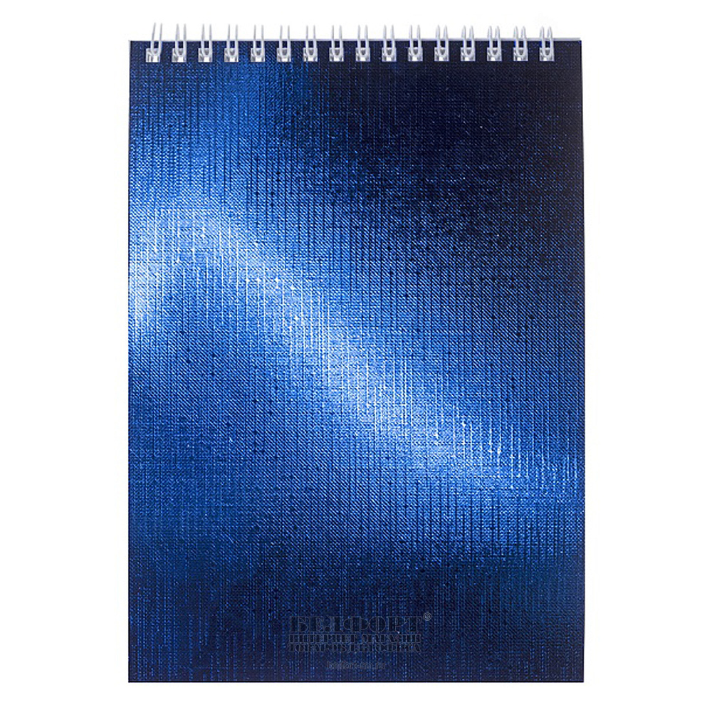 Блокнот А5, 80л, Hatber, "Metallic", бумвинил, клетка, на спирали(гребне), синий