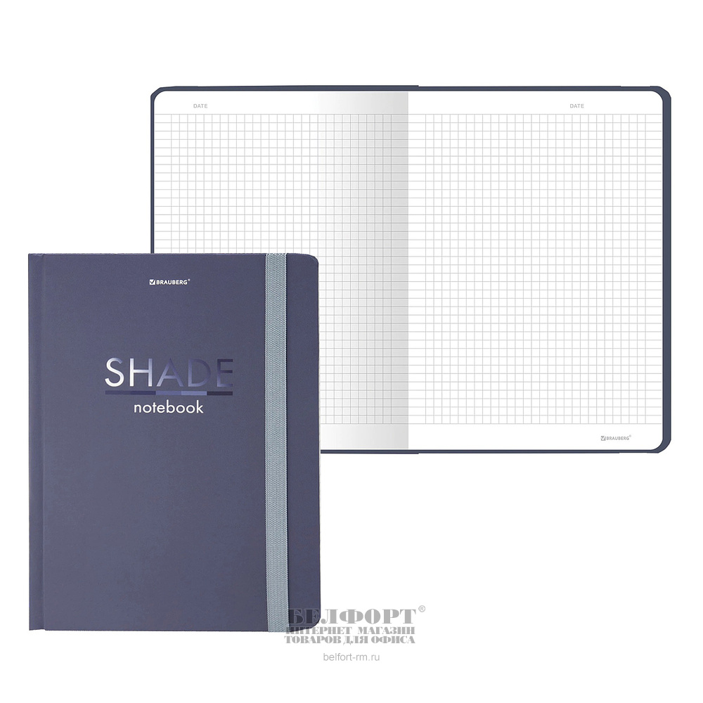 Блокнот А5, 203мм*145мм, 96л, Brauberg, "Тень (Shade)", картон ламинированный, клетка, в твердом переплете, серый, белый блок, матовая ламинация, на резинке