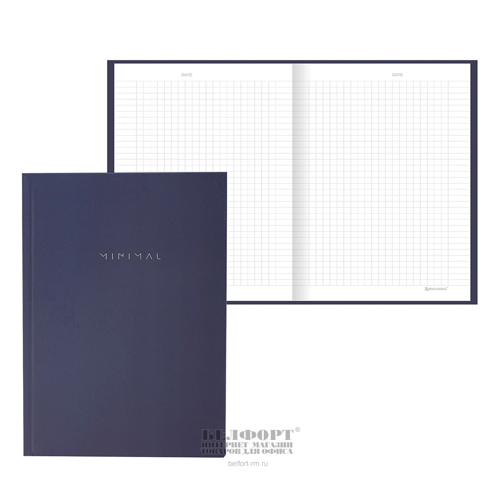 Бизнес-блокнот А5, 80л, Brauberg, "Minimal", картон ламинированный, клетка, в твердом переплете, синий, белый блок, матовая ламинация