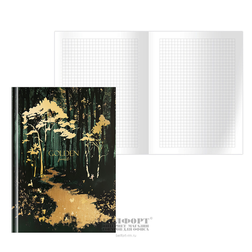 Бизнес-блокнот А5, 64л, BG, "Golden forest", картон ламинированный, клетка, в твердом переплете, цветной, мат. ламинация, тиснение фольгой