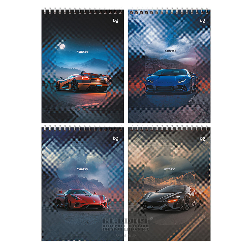 Блокнот А5, 60л, BG, "Sportcar", картон мелованный, клетка, на спирали(гребне), ассорти