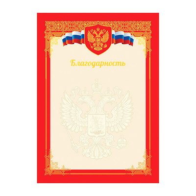 Благодарственное письмо Hatber, А4, тиснение фольгой, 200г⁄м², с Российск.символикой