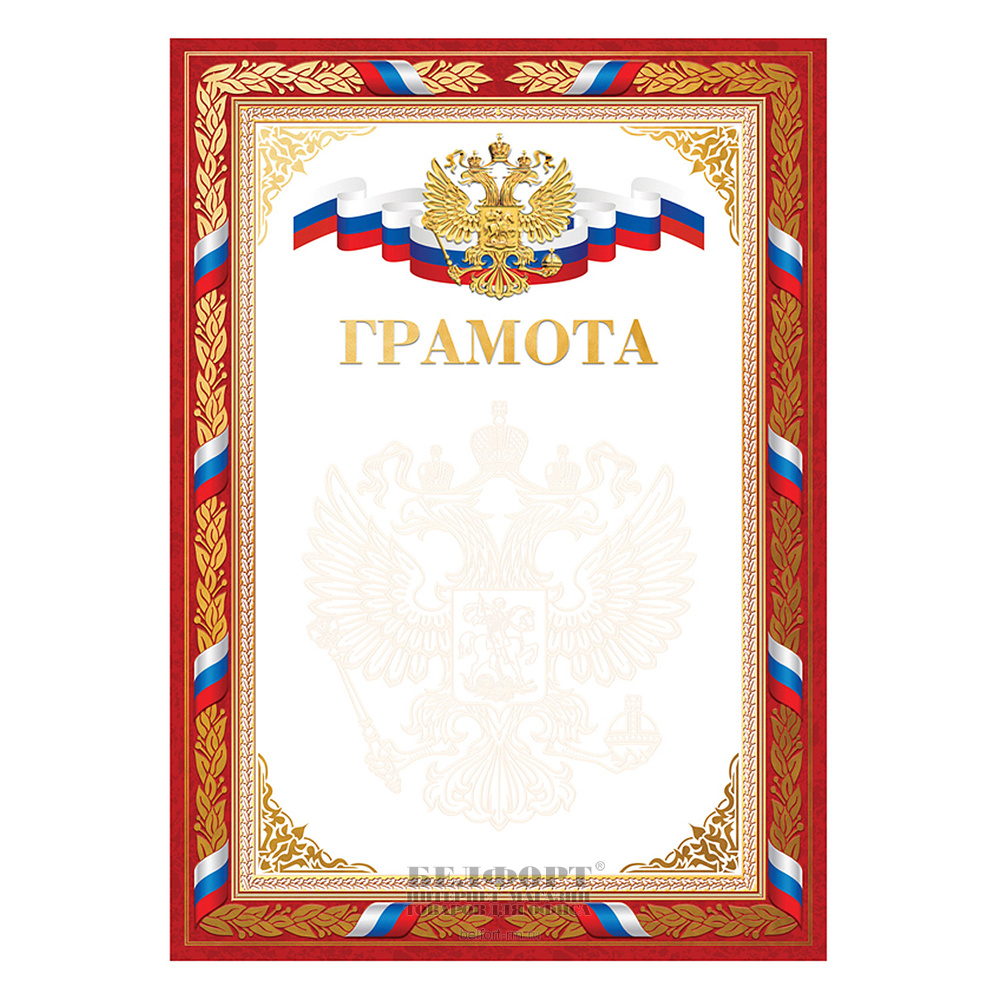 Грамота BG, картон мелованный, А4, красная, 190г⁄м², тиснение фольгой, конгрев, с Российск.символикой