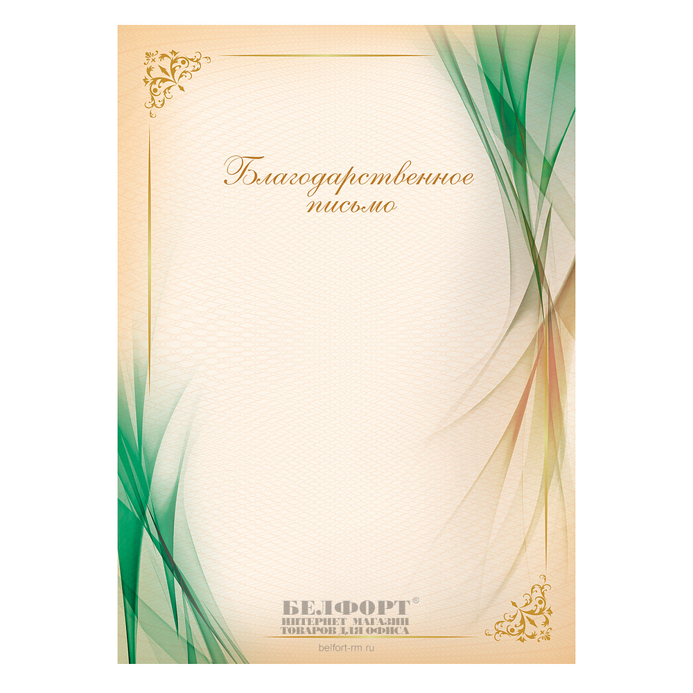 Благодарственное письмо BG, картон мелованный, А4, зеленое, 170г⁄м²