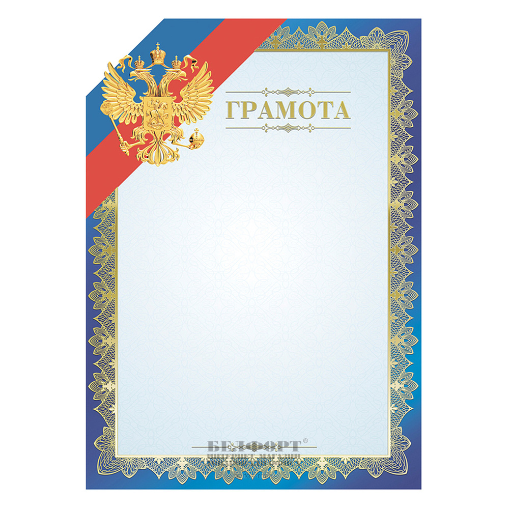 Грамота BG, картон мелованный, А4, синяя, 190г⁄м², тиснение фольгой, с Российск.символикой