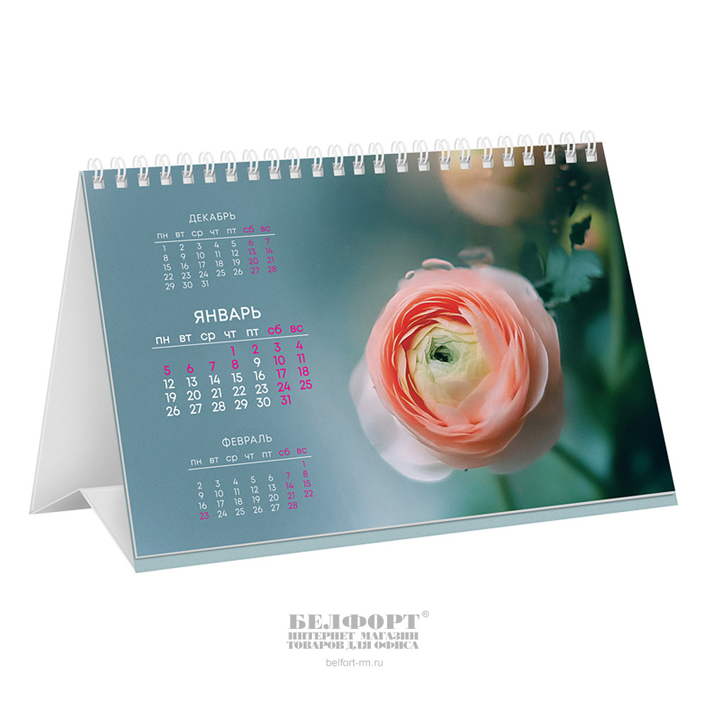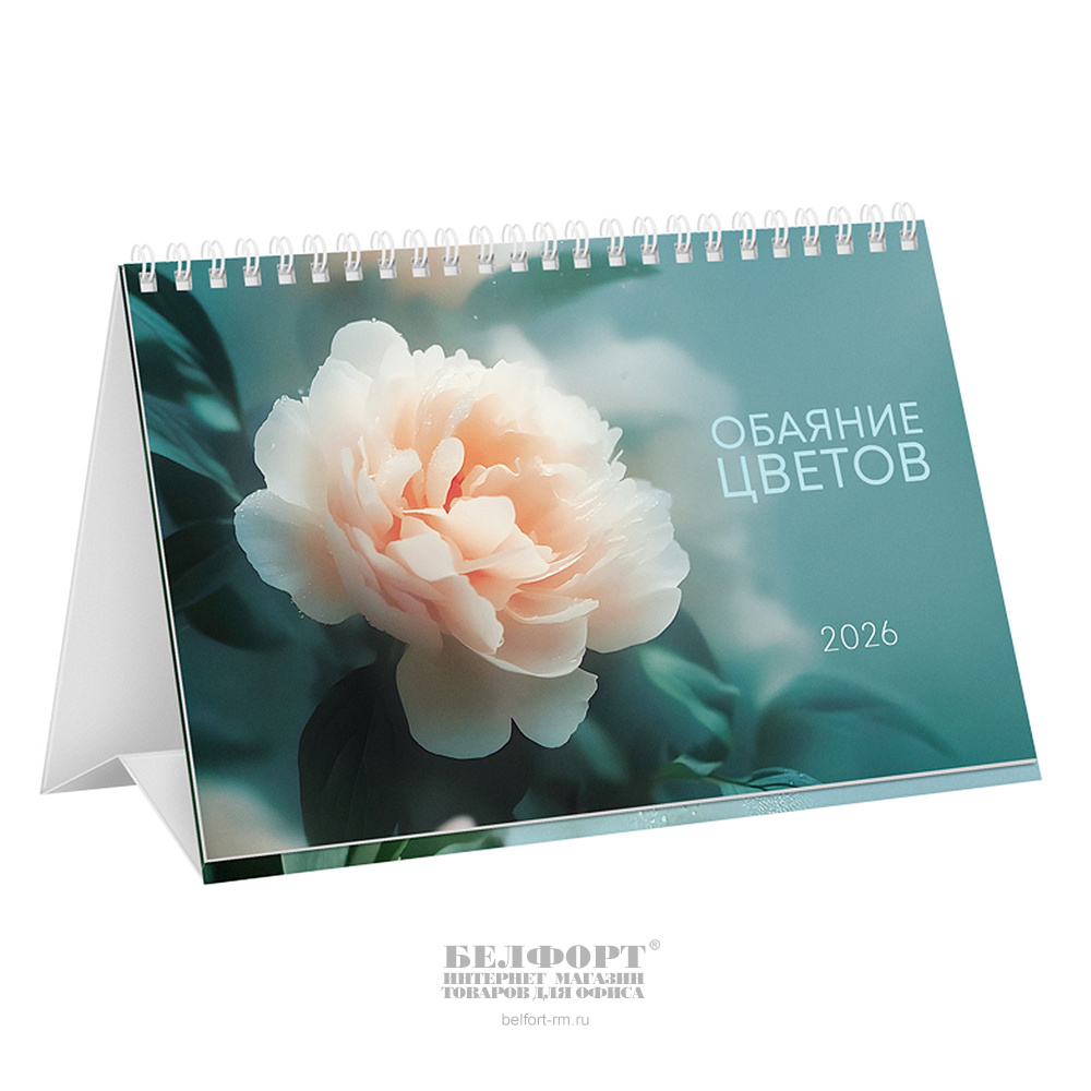 Календарь-домик 2026г. на спирали(гребне), 160мм*105мм, BG, "Обаяние цветов", горизонтальный, 7л