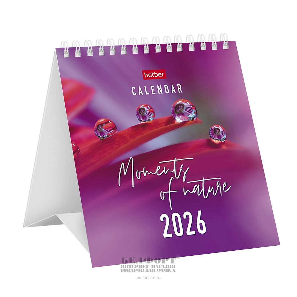 Календарь-домик 2026г. на спирали(гребне), 101мм*101мм, Hatber, "Moments of nature", квадратный, 12л