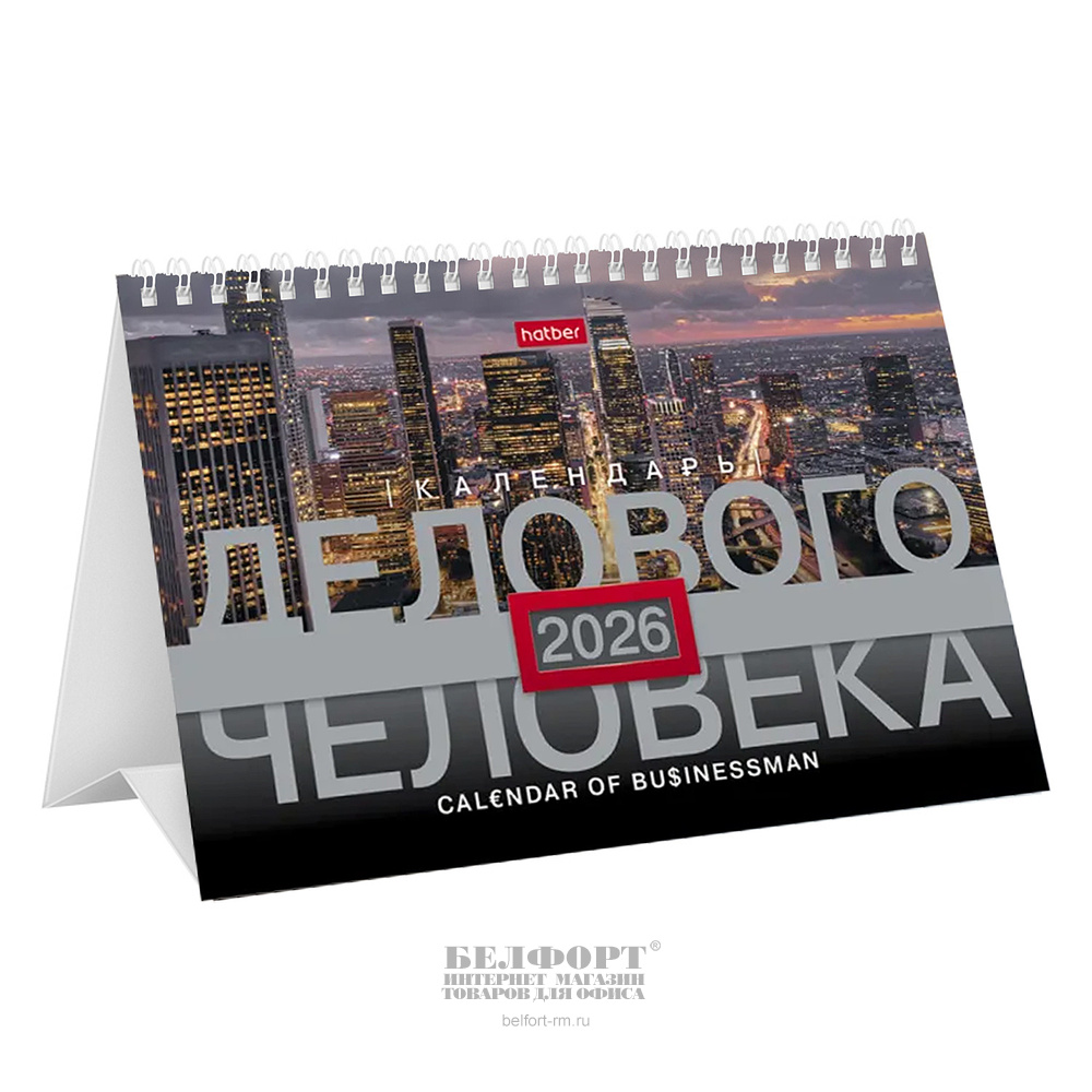 Календарь-домик 2026г. на спирали(гребне), 160мм*105мм, Hatber, "Делового человека. Серебро", горизонтальный, 12л, с бегунком