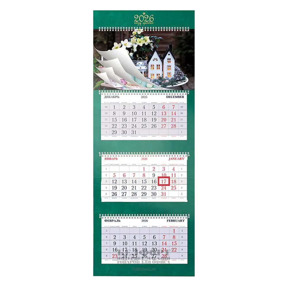 Календарь квартальный 2026г. 3-х блочный на 3гребнях, 712мм*330мм, Полином, "ПРЕМИУМ. Малиновка", с бегунком