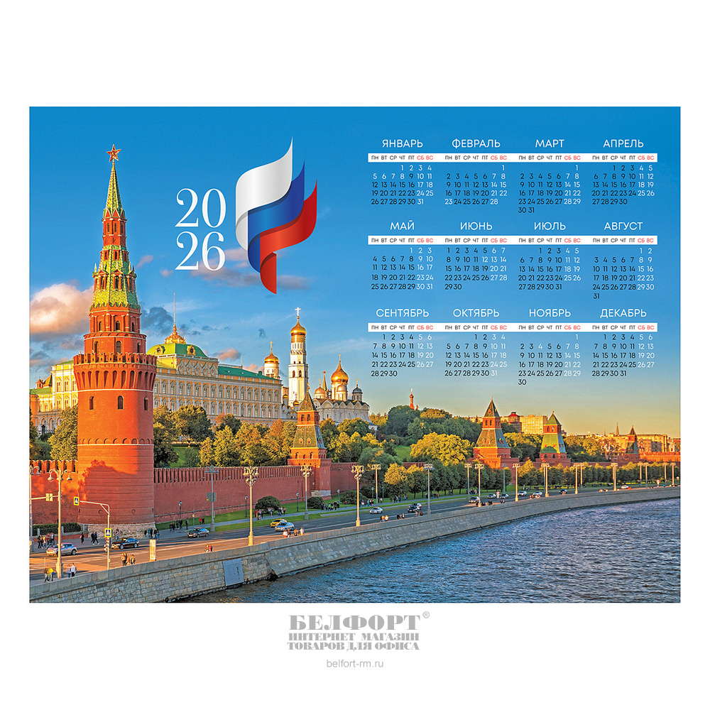 Календарь настенный листовой 2026г. А2, BG, "Москва", 59см*45см, бумага мелованная, 100г⁄м², горизонтальный, укрупненная сетка