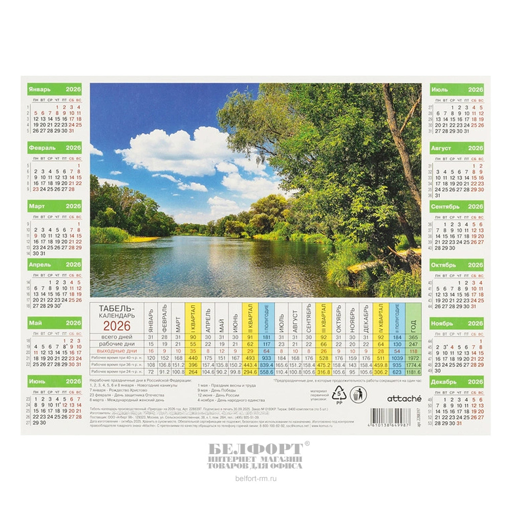Календарь-табель настольный 2026г. А4, 29см*22см, "Природа"