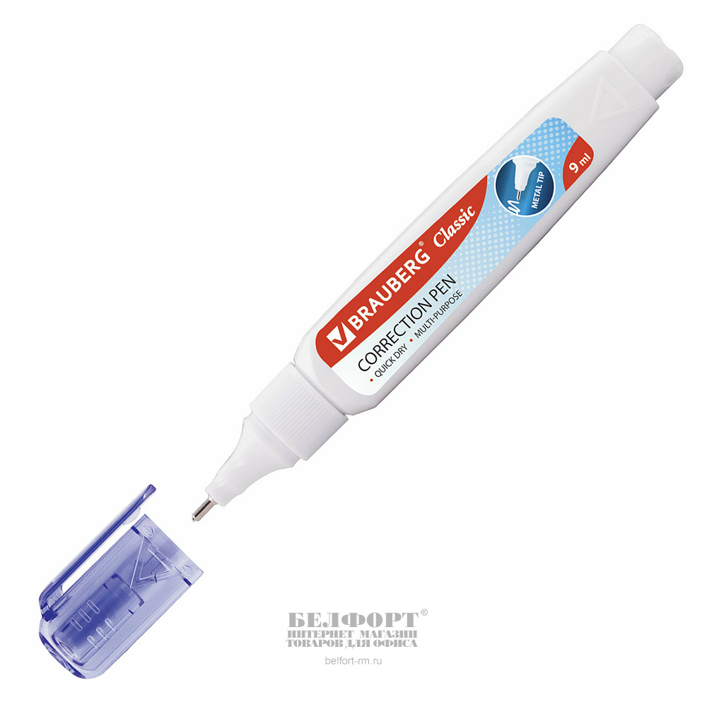 Коррект. ручка 9мл, Brauberg, мет. наконечник