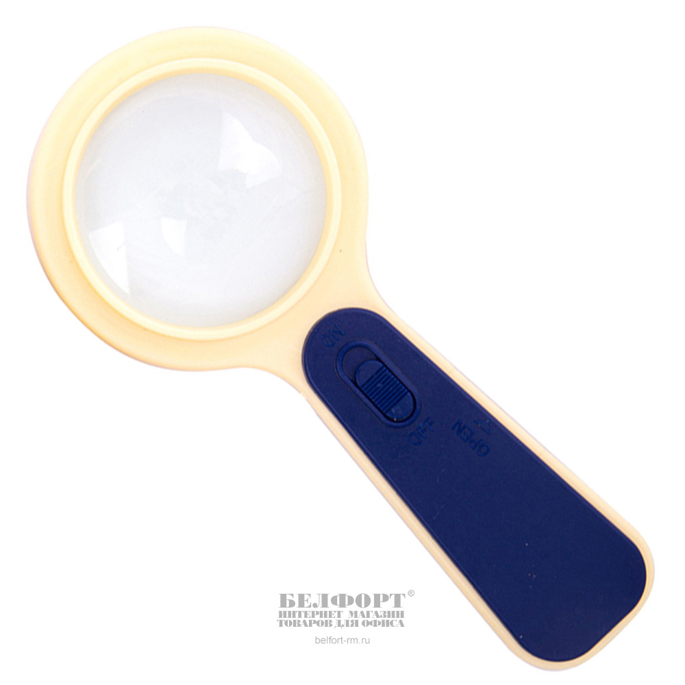 Лупа 50 мм, 5-крат. ув., OfficeSpace, с подсветкой, пластик, батарейки в комплект не входят