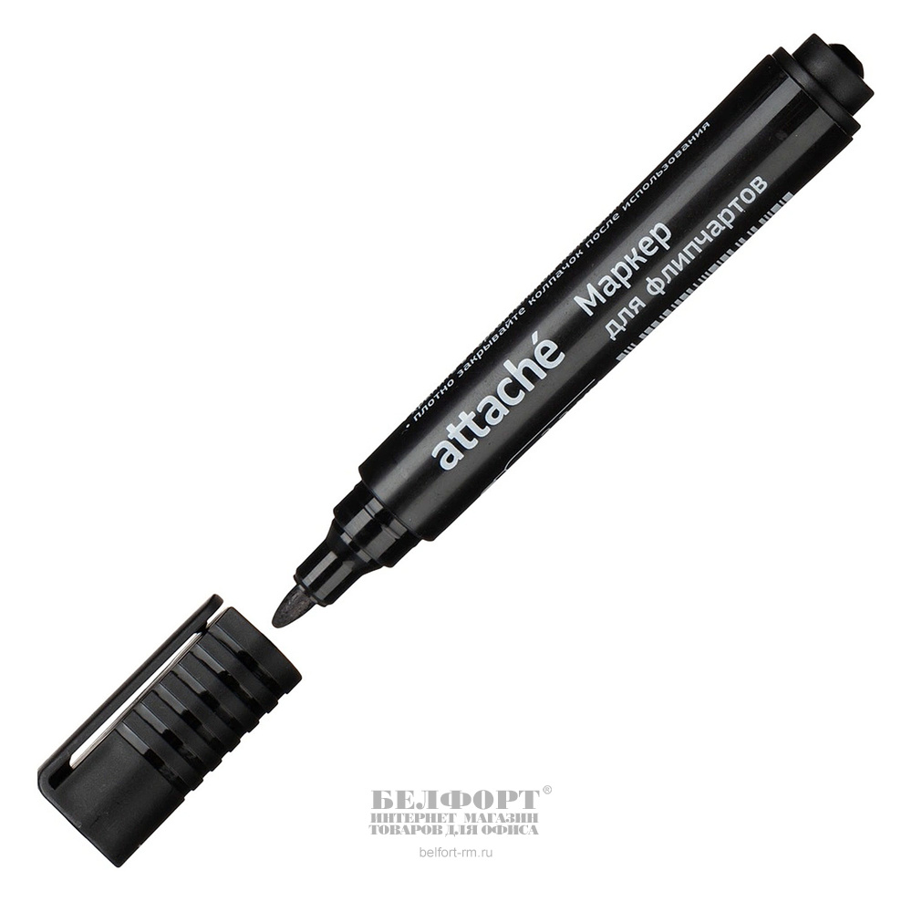 Маркер для флипчарта, Attache, 2мм-3мм, черный, круглый(пулевидный) наконечник