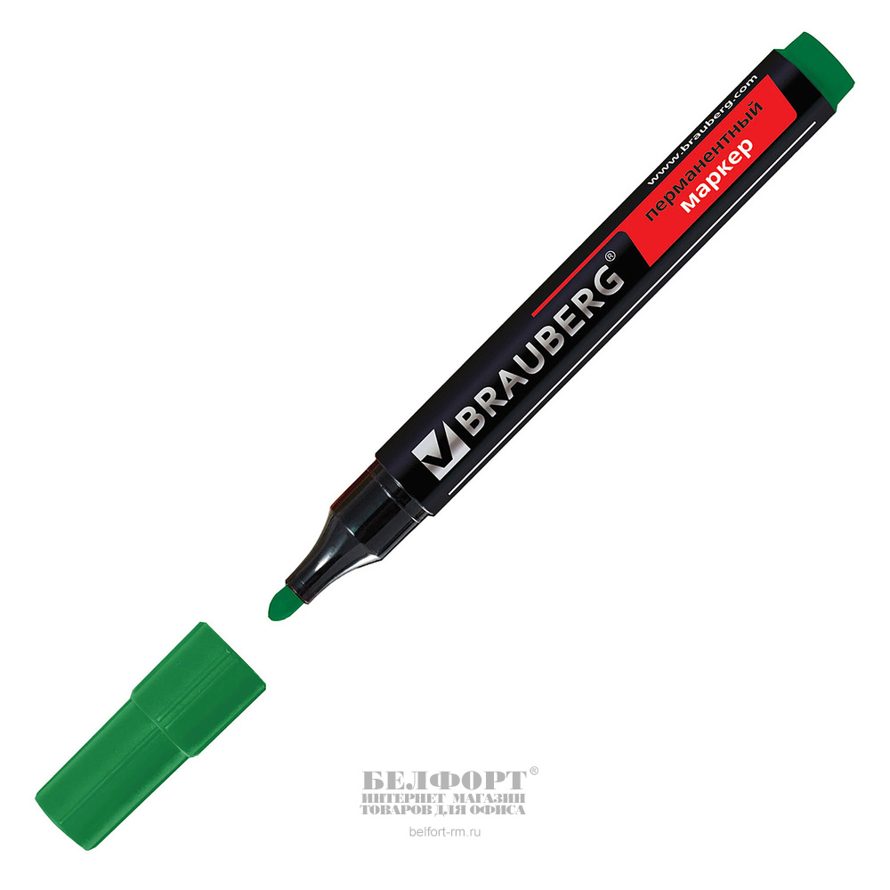 Маркер перманентный, Brauberg, "Контракт (Contract)", 3мм, зеленый, круглый(пулевидный) наконечник