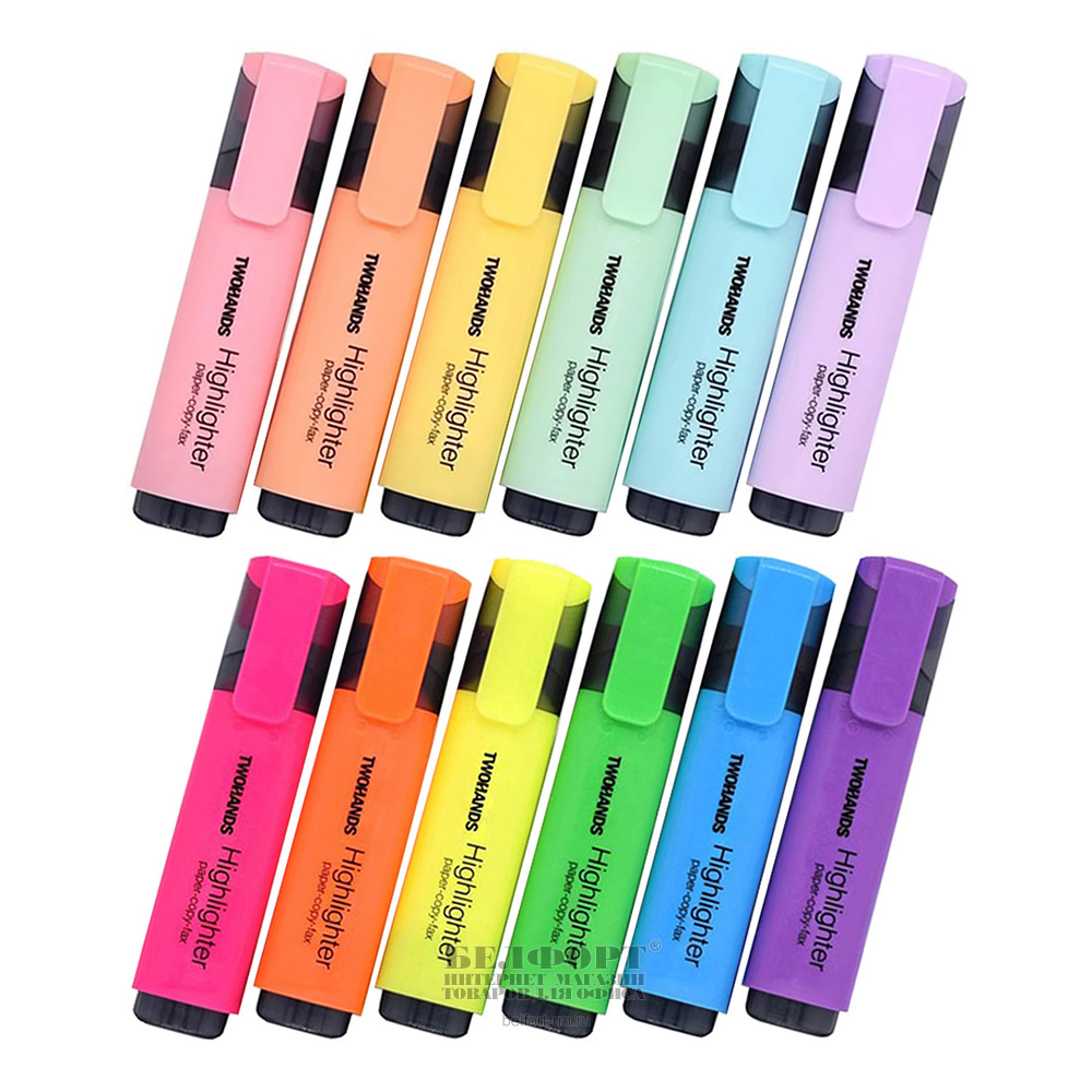 Набор маркеров 12шт, 12цв, текстовый, TWOHANDS, 1мм-5мм, ассорти, 6 классических, 6 пастельных цв.