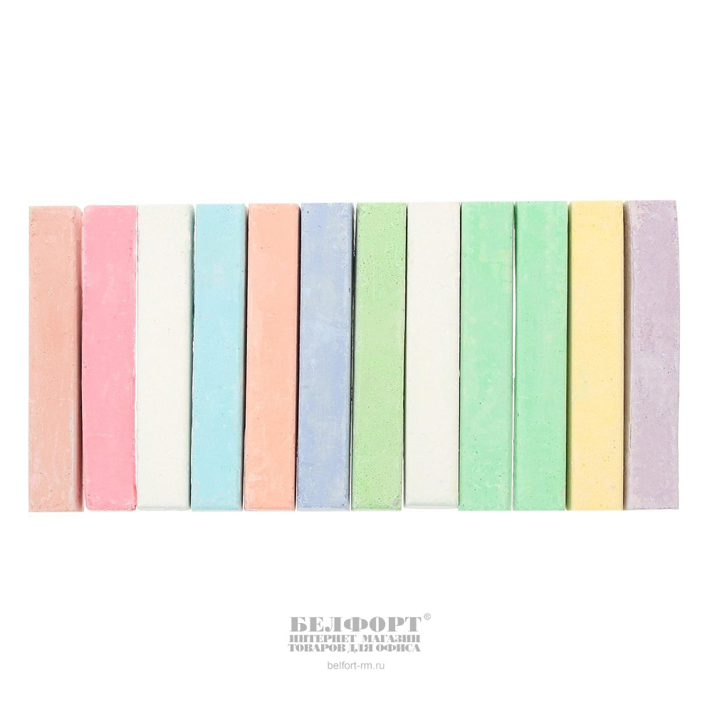 Мел цветной, для асфальта, 12цв, 12шт, Calligrata, "ТОР", квадратный, пластик. ведро, средней твердости