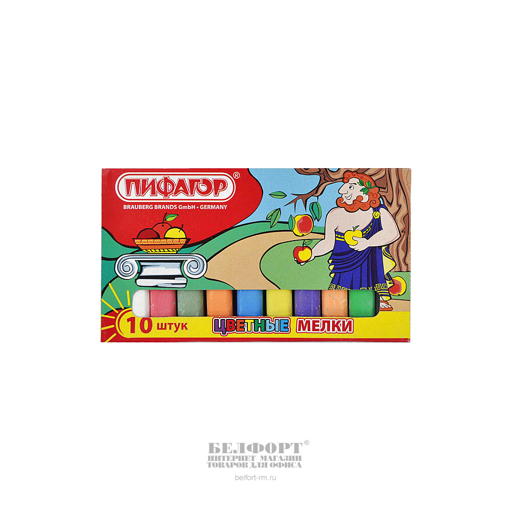 Набор мелков ПИФАГОР шк. цветных (10шт.) 4шт/52шт/упак