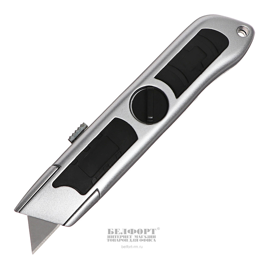 Нож 19мм, Calligrata, "Zinc-alloy", корпус металл, серебристый, фиксатор, антискользящие вставки