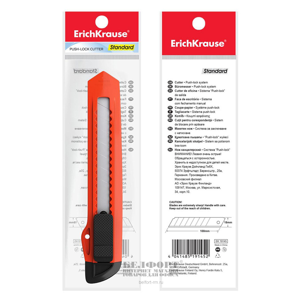 Нож 18мм, Erich Krause, "Standard", корпус пластик, ассорти