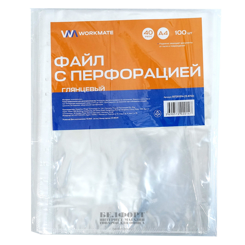 Добавить к сравнению262827Есть в наличии 599 уп.Папка-файл 25мкм, А4, Workmate, глянцевая, с перфорацией, 100шт