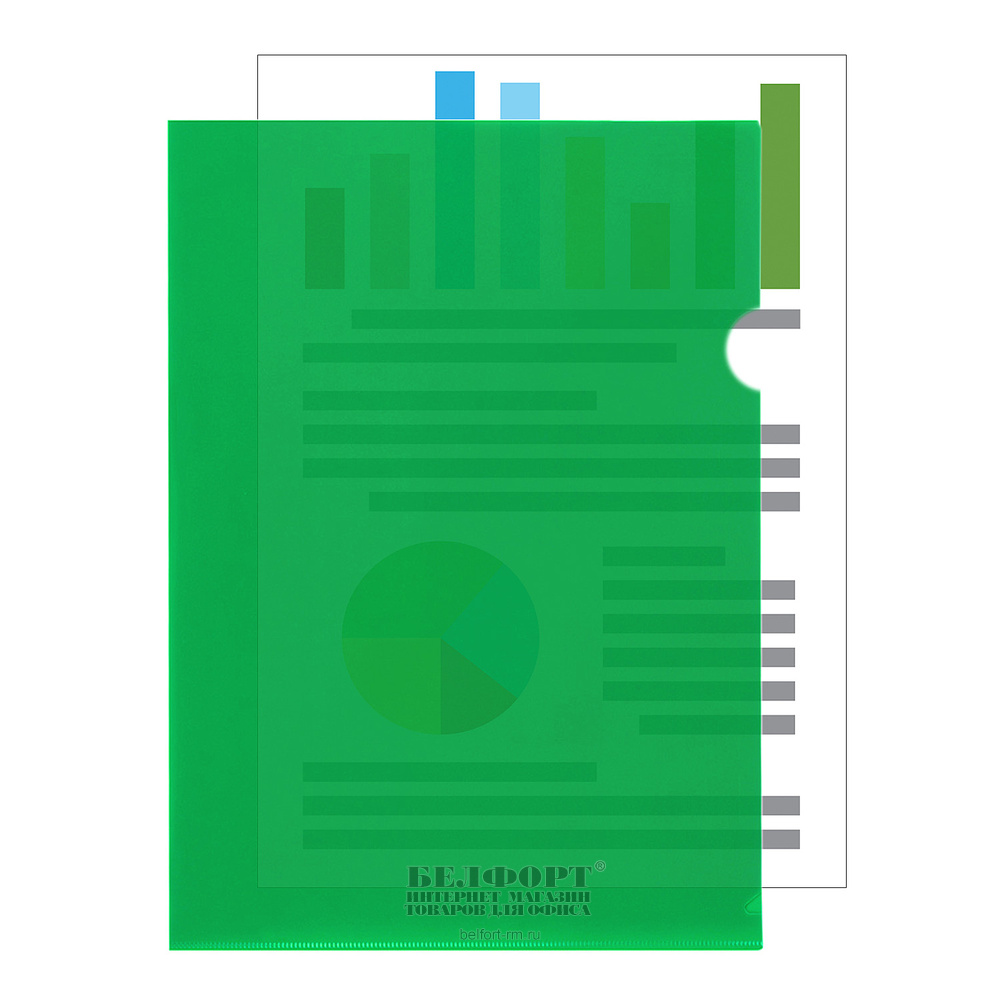 Папка-уголок А4, 0,18мм, пластик, СТАММ, "Хамелеон", непрозрачная, зеленый хамелеон