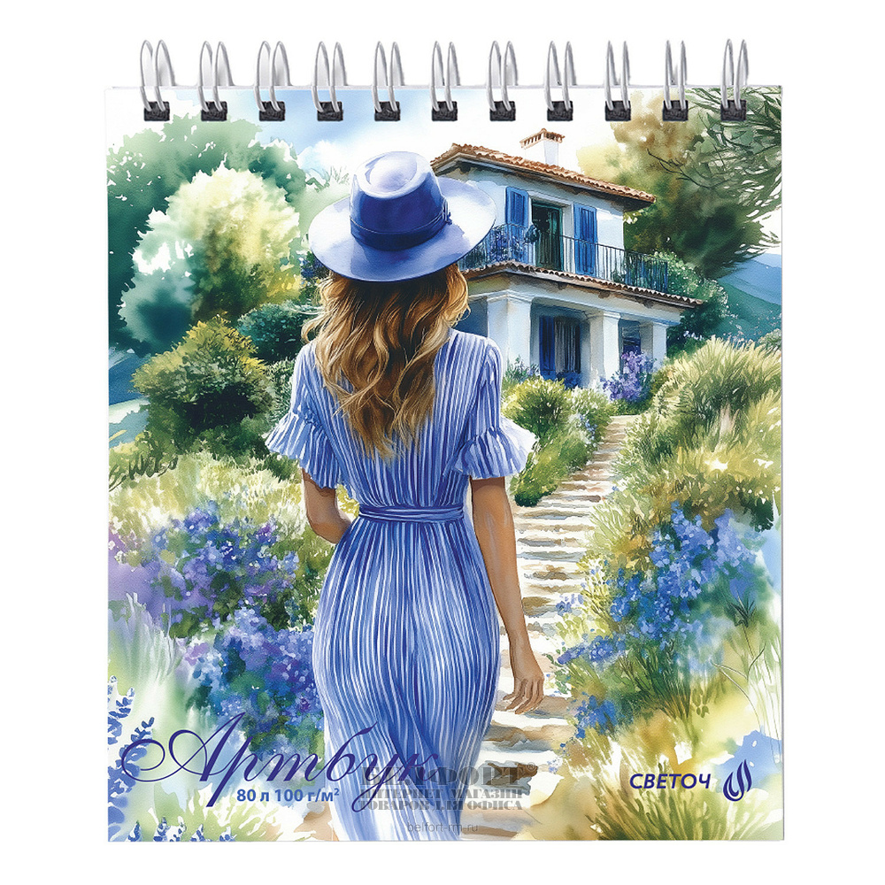 Скетчбук на спирали(гребне), 17,5см*16,6см, офсет, Светоч, "Лавандовые грезы", 80л, белый, 100г⁄м², твердая пластиковая подложка