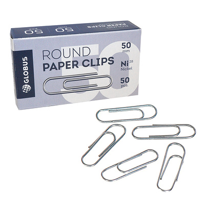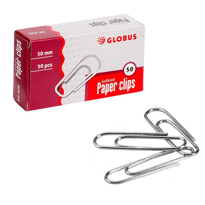 Скрепки овальные, 50мм, никелированные, Глобус, 50шт, картон. уп.