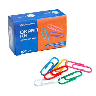 Скрепки овальные, 28мм, цветные, Workmate, 100шт, картон. уп.